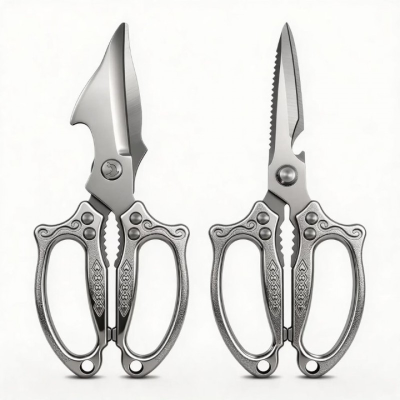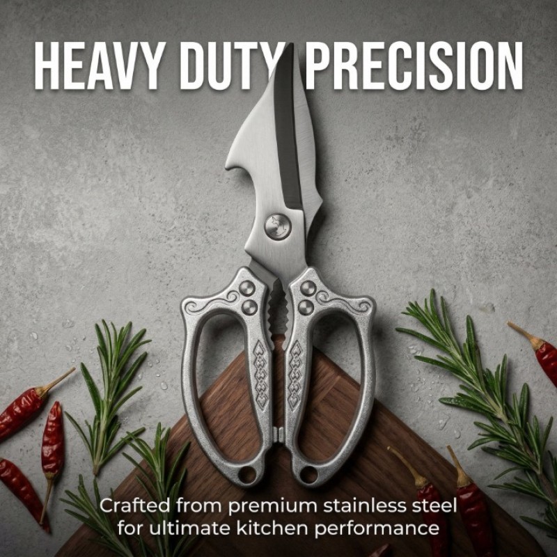 2-IN-1 VERSATILE VALUE SET: Come with 2 specialized kitchen shears to cover all culinary cutting needs—1 heavy-duty poultry shear for tough bones, meat and whole poultry, 1 all-purpose cooking scissor for daily food prep. No need for separate tools, offering unbeatable professional utility and cost-effective value for home cooking.HIGH-GRADE DURABLE STAINLESS STEEL: Crafted from premium rust-resistant stainless steel, the precision-sharpened serrated blades grip slippery foods securely and maintain sharpness for long-term use. Sturdy construction resists bending and slipping, cutting through c..