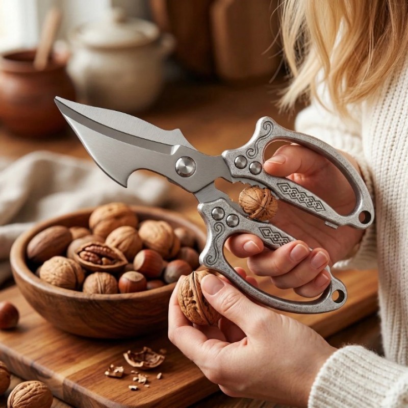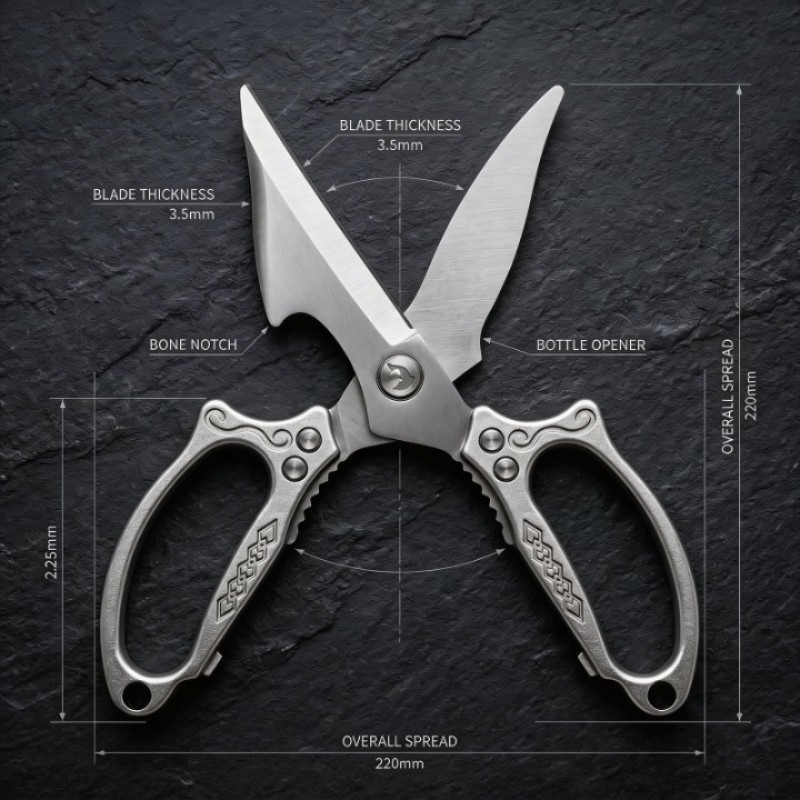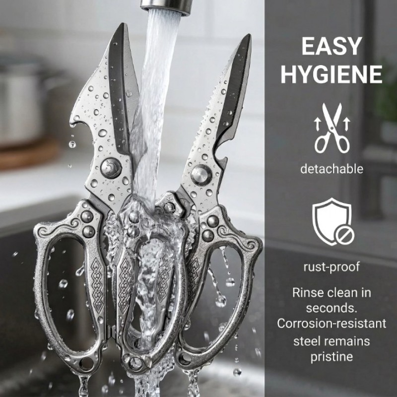 - HIGH-GRADE DURABLE STAINLESS STEEL: Crafted from premium rust-resistant stainless steel, the precision-sharpened serrated blades grip slippery foods securely and maintain sharpness for long-term use. Sturdy construction resists bending and slipping, cutting through chicken bones, seafood shells, herbs with effortless force.