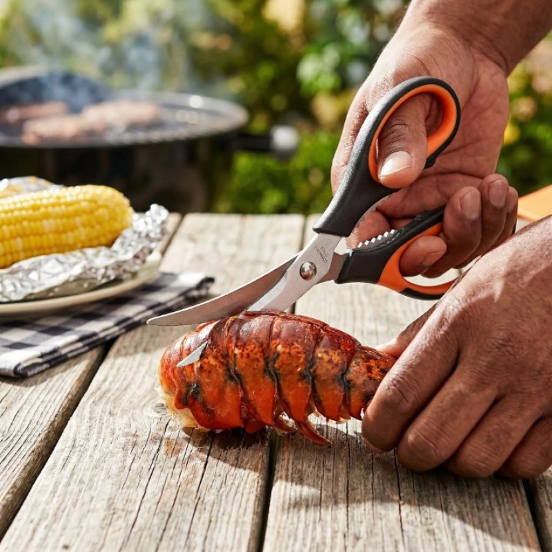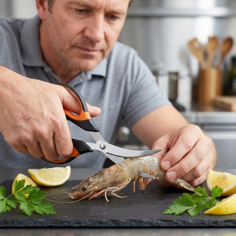 - MULTI-SCENE VERSATILE USAGE & ALL-ROUND APPLICATIONS: Fully adapted to core kitchen needs - Herb Scissors efficiently cut herbs, chives, coriander, mint, etc., with uniform and flat cuts that do not damage the flavor of ingredients; shrimp scissors accurately handle shrimp back opening and crab shelling, making operation convenient and not pricking hands; chicken bone scissors can strongly cut hard objects such as chicken bones, duck bones and fish bones, with a thick blade design for worry-free load-bearing. It can also take into account daily needs such as cutting meat, vegetables, dough, opening packages, trimming twine, etc., solving all kinds of kitchen cutting problems in one stop